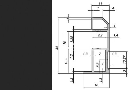 Профиль вертикальный NS "Вогнутый" Росла Черный мат. 5,4 м