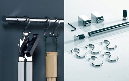 Рейлинг 600 мм, Линеро, КОМПЛект: труба 600, 2 заглушки, 2 держателя, 5 крючков, цвет ХРОМ глянцевый (0180360005)
