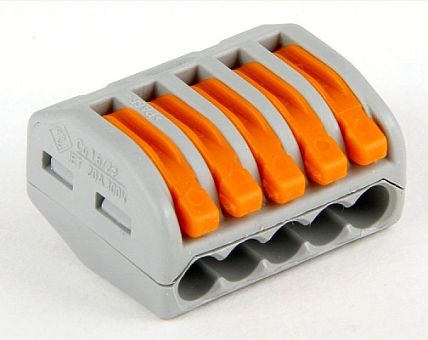 Соединитель клеммный для 5-и проводов быстрозажимной 0,75-2,5мм², 16А, 250В