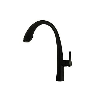 Смеситель д/кухни МАГНУС Г-образный излив вытяжной, корпус из латуни, черный