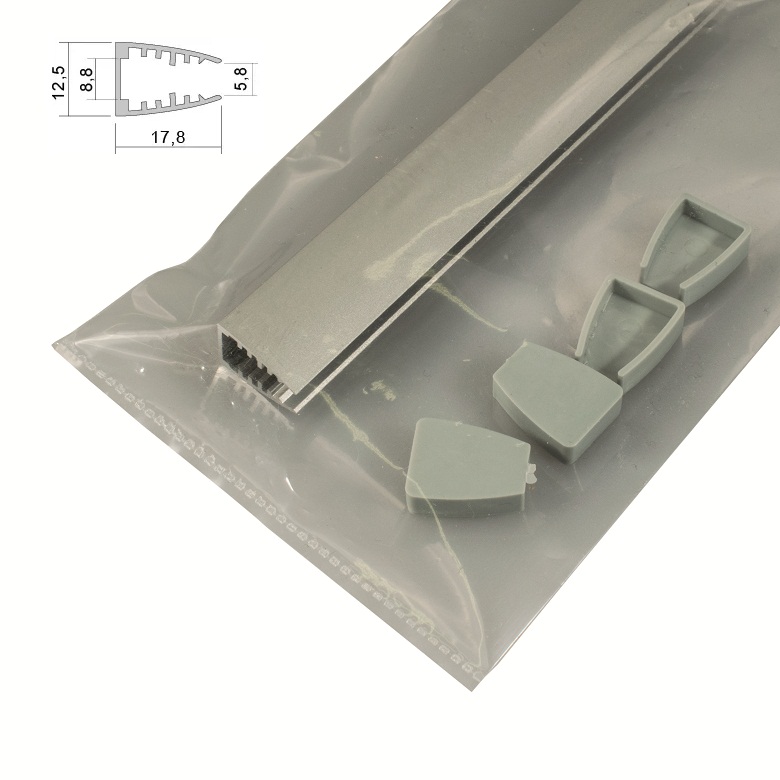 В состав базового комплекта входят: профиль 2м, комплект заглушек (по 2шт глухих и с отверстием).