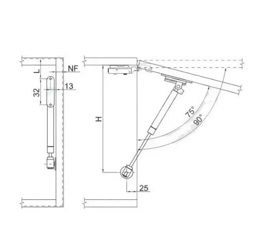 Максимальная нагрузка составляет 80N, что соответствует примерно 8 кг, делает его подходящим для различных типов шкафов и тумб. Рекомендуется устанавливать два подъемника на один фасад для более равномерного распределения нагрузки и повышения долговечности эксплуатации.