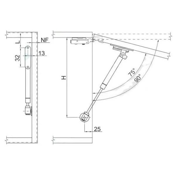 Максимальная нагрузка составляет 80N, что соответствует примерно 8 кг, делает его подходящим для различных типов шкафов и тумб. Рекомендуется устанавливать два подъемника на один фасад для более равномерного распределения нагрузки и повышения долговечности эксплуатации.