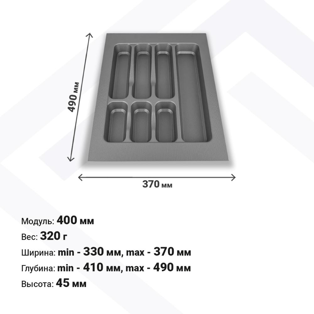 Лотки для столовых приборов EVA позволяют рационально организовать внутреннее пространство выдвижных ящиков. Цвета: серый и белый глянец. Для ящиков шириной 400 мм.