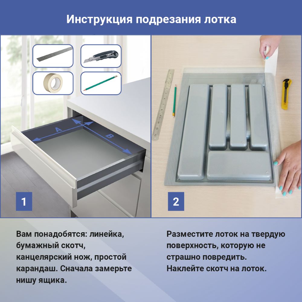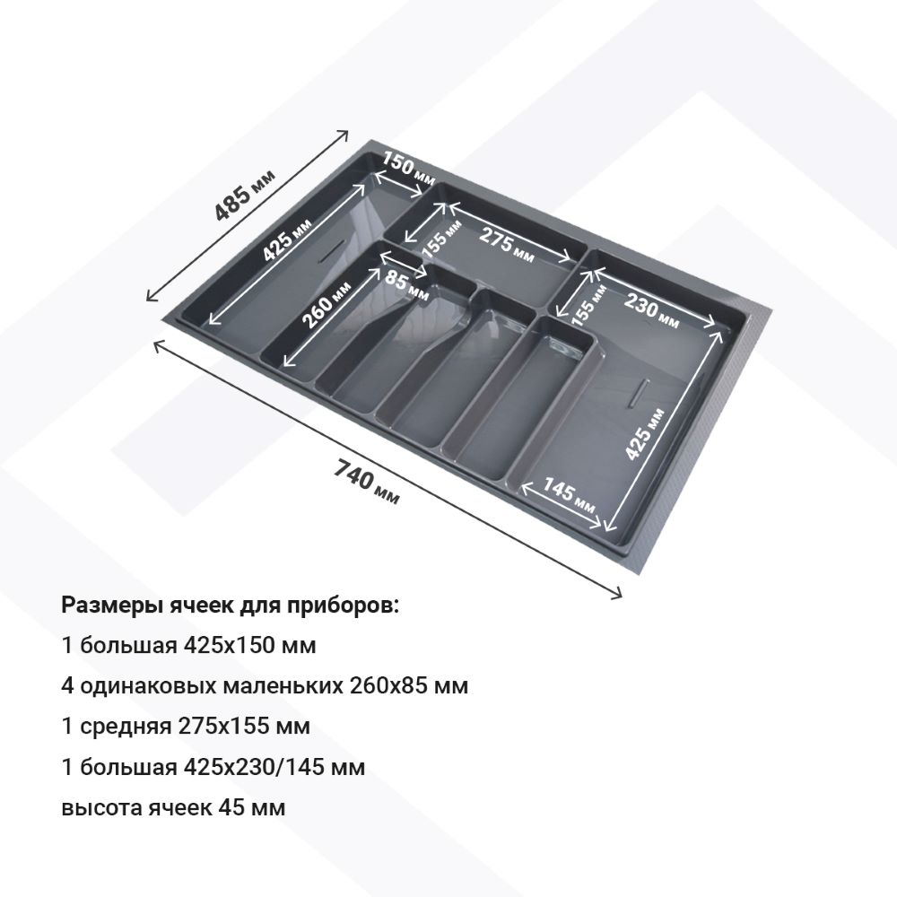 Лоток для столовых приборов М800мм, 740х485мм, серый
