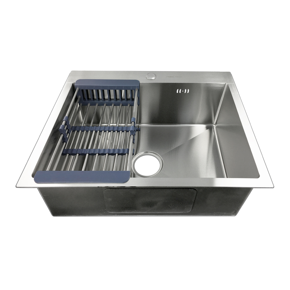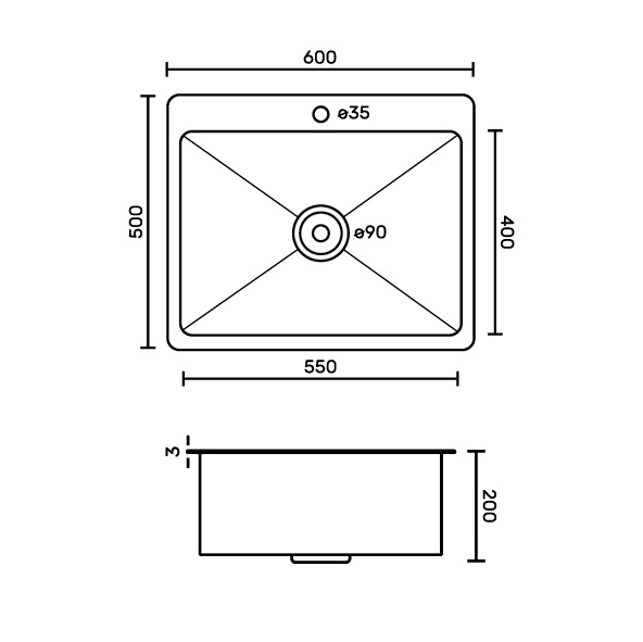 Мойка врезная 60х50 см, толщина основания 3,0 мм, чаша 0,8 мм, глубина 200 мм + большой сифон с переливом. Сифон с углубленной горловиной, мусоросборником и крышкой. В комплект входит универсальная раздвижная корзина.