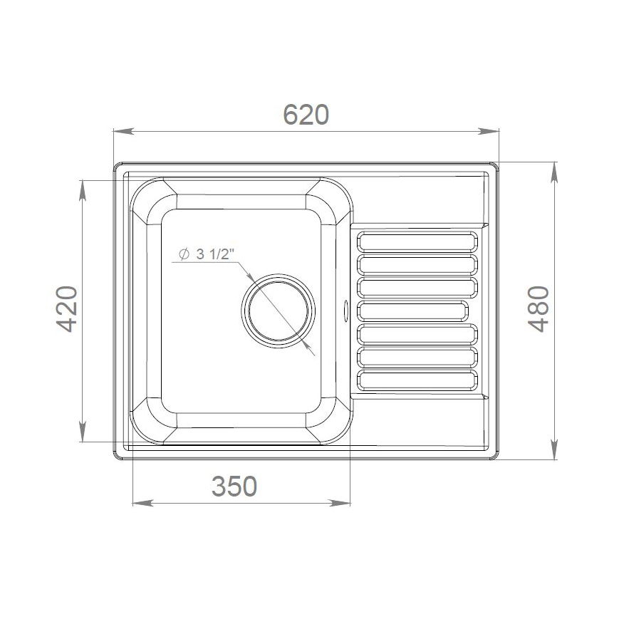 Общий размер мойки