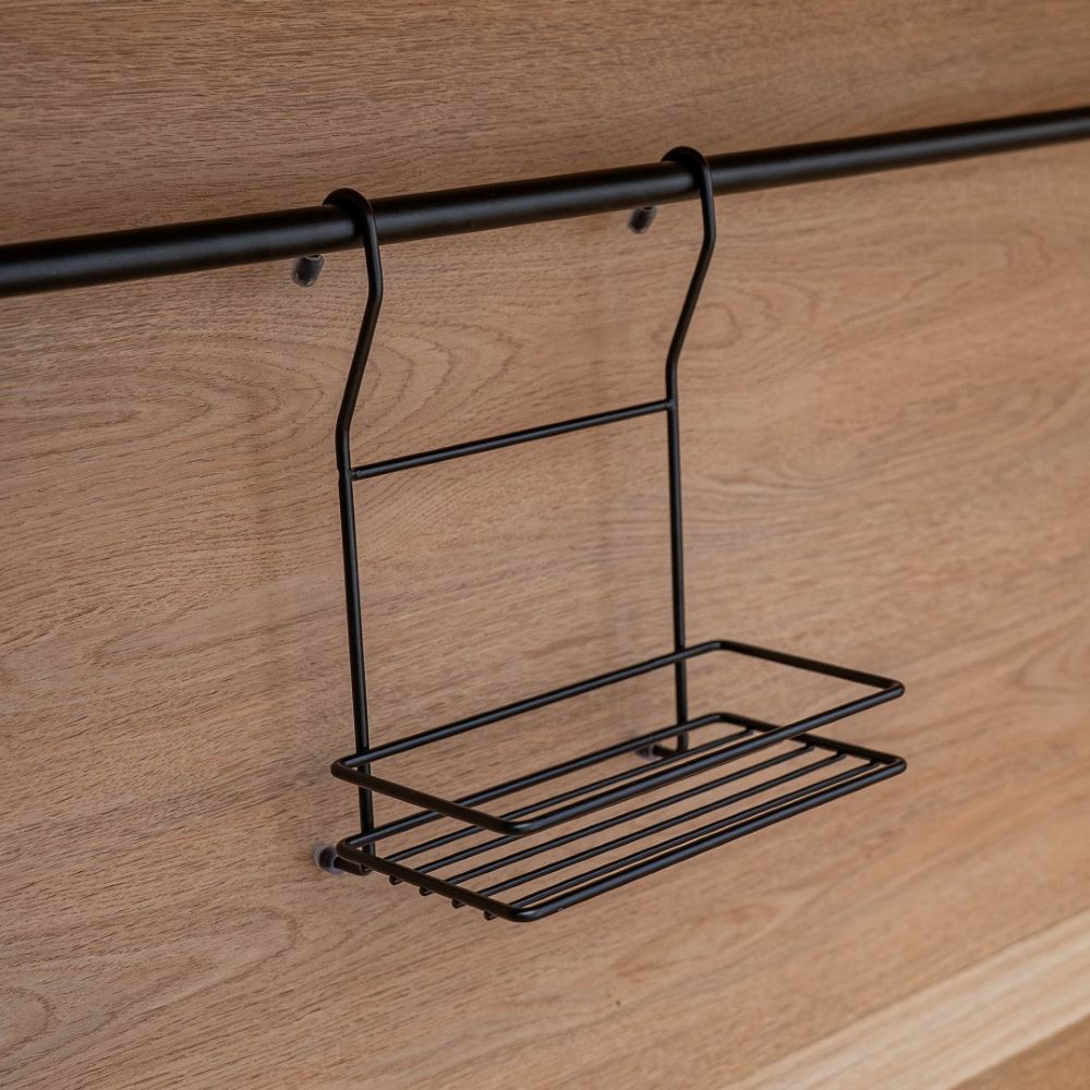 Полка подвесная для рейлинговой системы. Позволяет эффективно использовать пространство на стене. Если повесить полку над мойкой, то на нее поместятся моющие средства. Если разместить полку над рабочей зоной, то можно поставить на нее часто используемую технику. Например, кофемолку или миксер. Легко и надежно вешается на трубу рейлинга. Не боится влажности и сохранит идеальный вид на долгие годы.