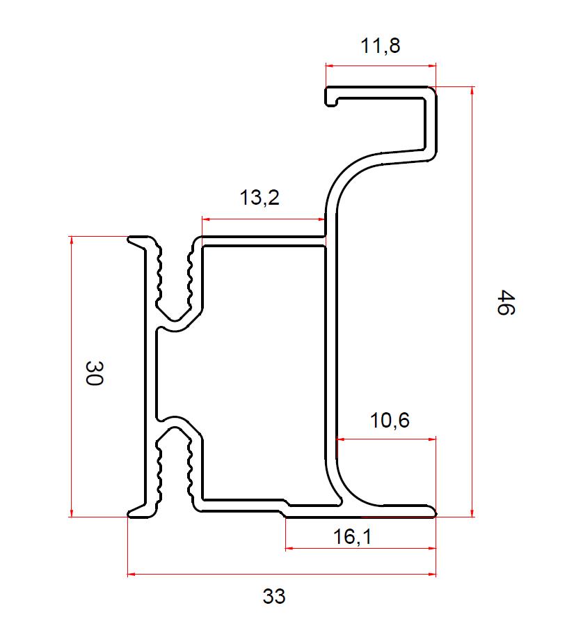Профиль вертикальный боковой, золото анодир. с брашировкой 4700мм
