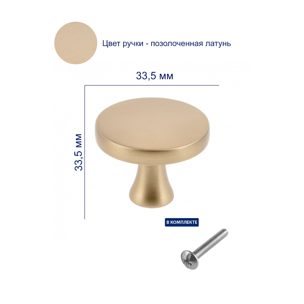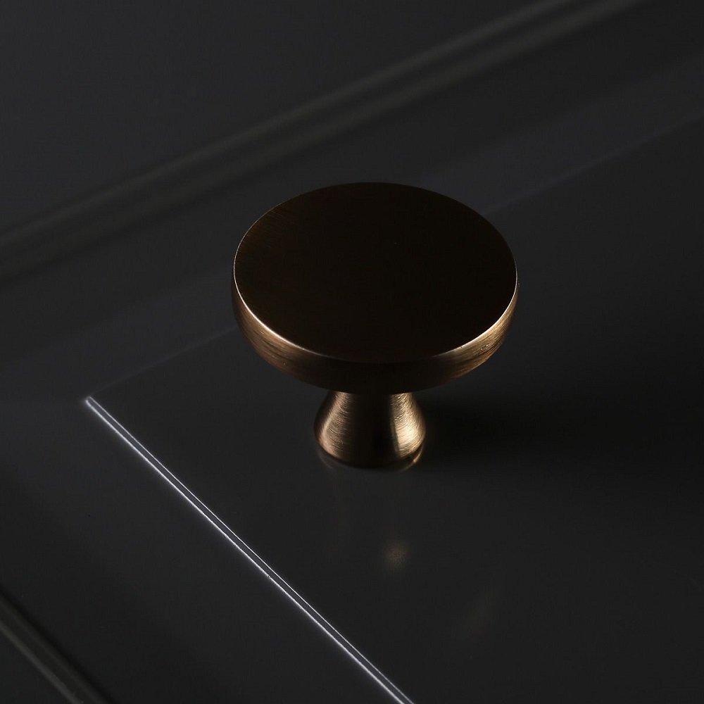 Ручка-кнопка GTV DUNE, выполненная в цвете позолоченной латуни, является изысканным элементом мебели. Ее уникальная форма кнопки с плоской шляпкой добавляет элегантности и стиля, делая её идеальным акцентом для шкафов, комодов и ящиков.