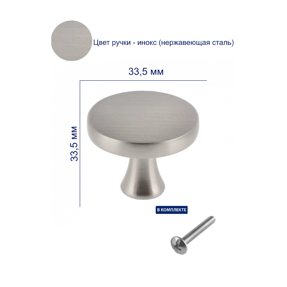 Ручка-кнопка GTV DUNE, выполненная в цвете шлифованной стали, является изысканным элементом мебели. Ее уникальная форма кнопки с плоской шляпкой добавляет элегантности и стиля, делая её идеальным акцентом для шкафов, комодов и ящиков.