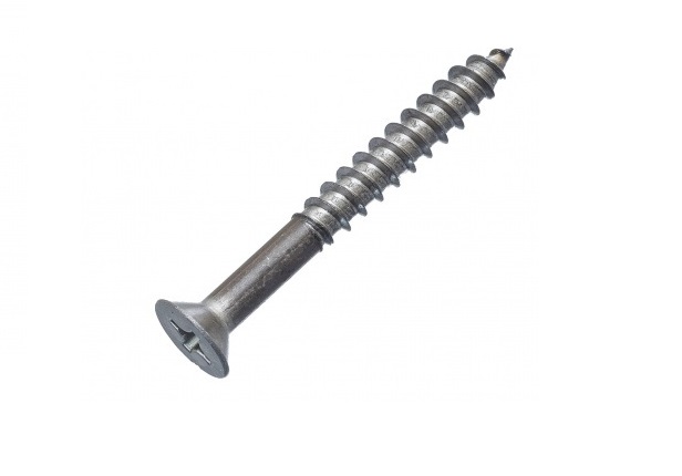 Шуруп самонарезающий с головкой потайной формы, с резьбой и острым концом.