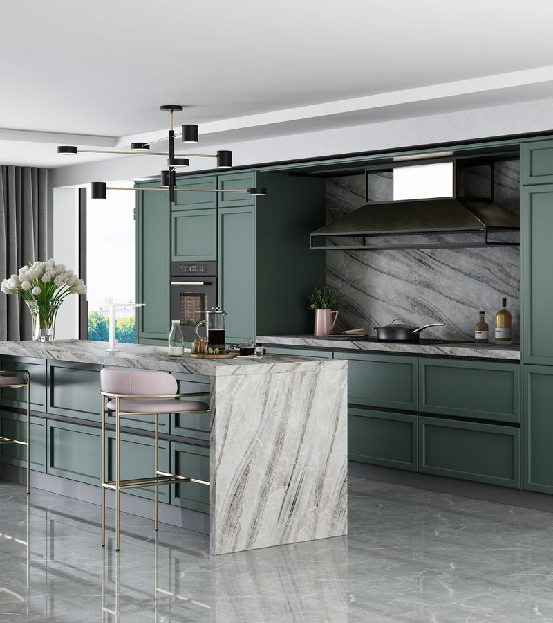Путешествуя, мы открываем для себя красоту нетронутой природы. Сохранить образ древних таёжных скал на своей кухне позволит декор Мрамор Карелия.